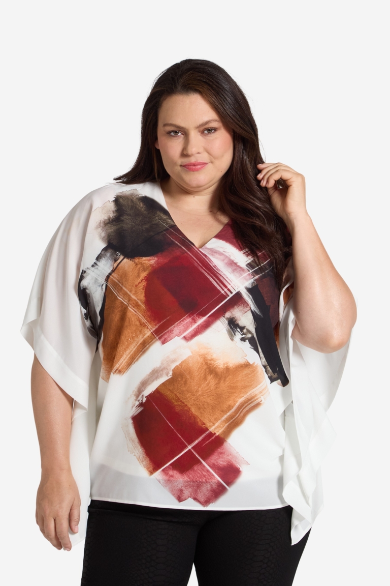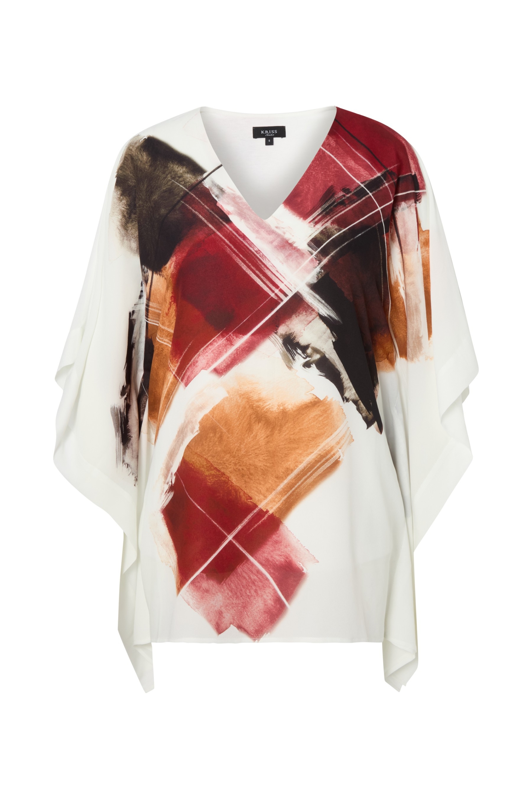Von Hand geknitterte Bluse mit weicher Haptik, Print und schwarzen Details. Klassischer Hemdkragen, der vorn in der Mitte in die Knopfleiste übergeht. Die Knopfleiste ist auf beiden Seiten mit schwarzer Spitze eingefasst und mit dezenten Knöpfen versehen. Das Modell ist plissiert, die Plissierung endet aber oberhalb von Hüfte und Gesäß. Die Plissierung der 3/4-Ärmel endet vor dem Ärmelabschluss. Beide haben unten einen schwarzen Rand. Die Gesamtlänge in Größe S beträgt ab dem höchsten Punkt unter dem Kragen 63 cm. Unsere größeren Größen fallen größengetreu aus, wohingegen unsere kleineren Größen etwas großzügiger ausfallen.