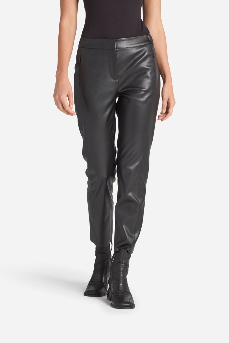 Cooler Rock aus schwarzem Kunstleder mit weicher Haptik und A-Linien-Passform. Bund mit Knopf und Reißverschluss hinten. Stilvolle Cut-Out-Naht an der Hüfte, asymmetrische Vorderseite. Raue Kante, die am unteren Rand des Rocks endet. Versiegelte Nähte und eine weiche, wildlederartige Innenseite sorgen für ein angenehmes Tragegefühl. Die Gesamtlänge in Größe S beträgt 57 cm.