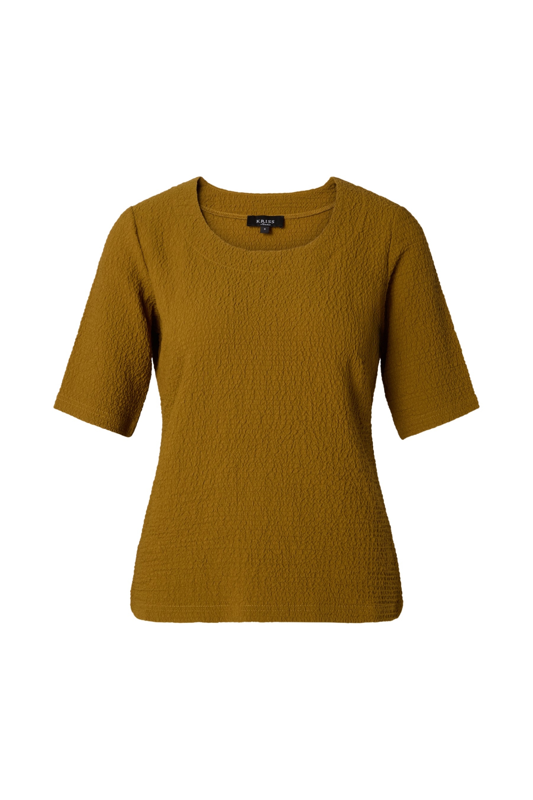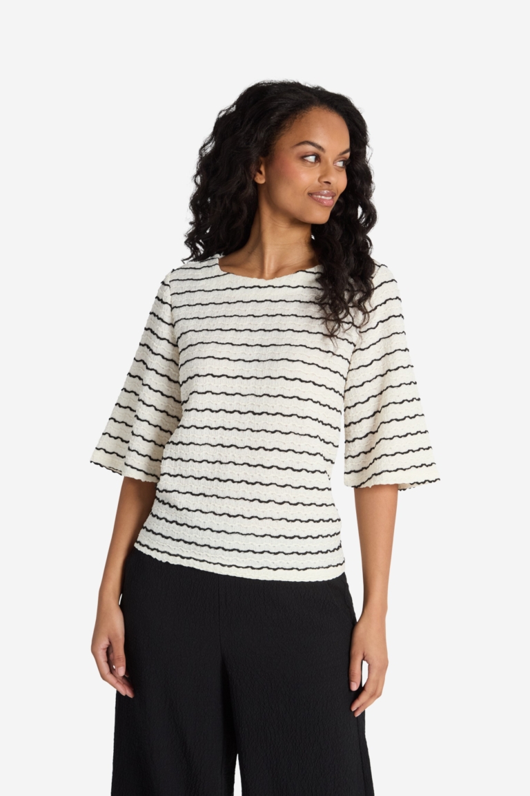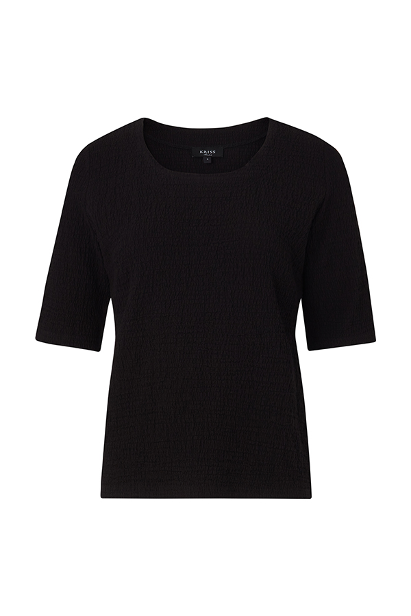Dieses Shirt aus einem weich, anschmiegsamen Jersey, mit einem plastischen Struktur, bietet einen angenehmen Tragekomfort. Topp Crissa hat eine klassische Passform und ist leicht tailliert. Einen runden Halsausschnitt und die ¾ Ärmel bieten die Möglichkeit mit Schmuck Ihren Look den letzten Pfiff zu geben. Ein Allround Oberteil für viele Gelegenheiten.