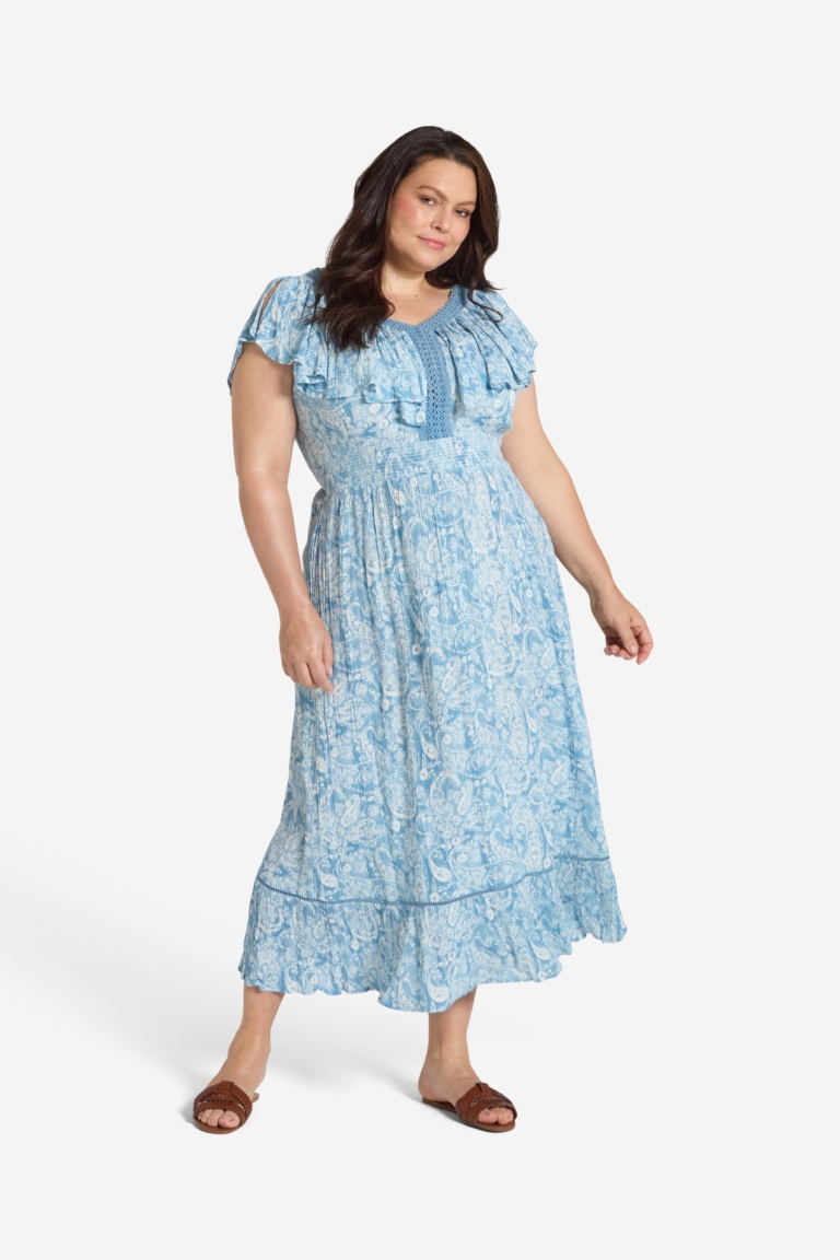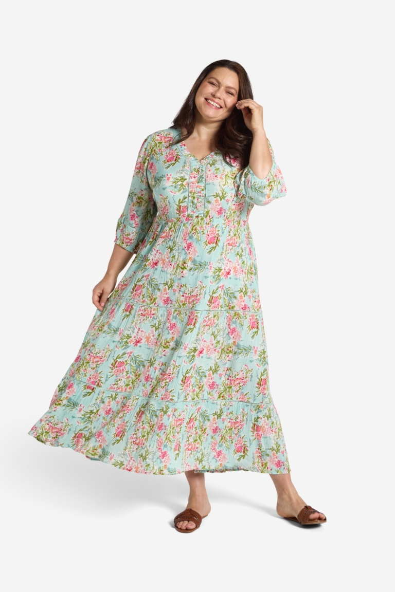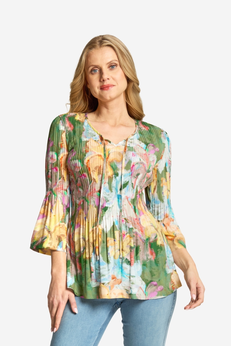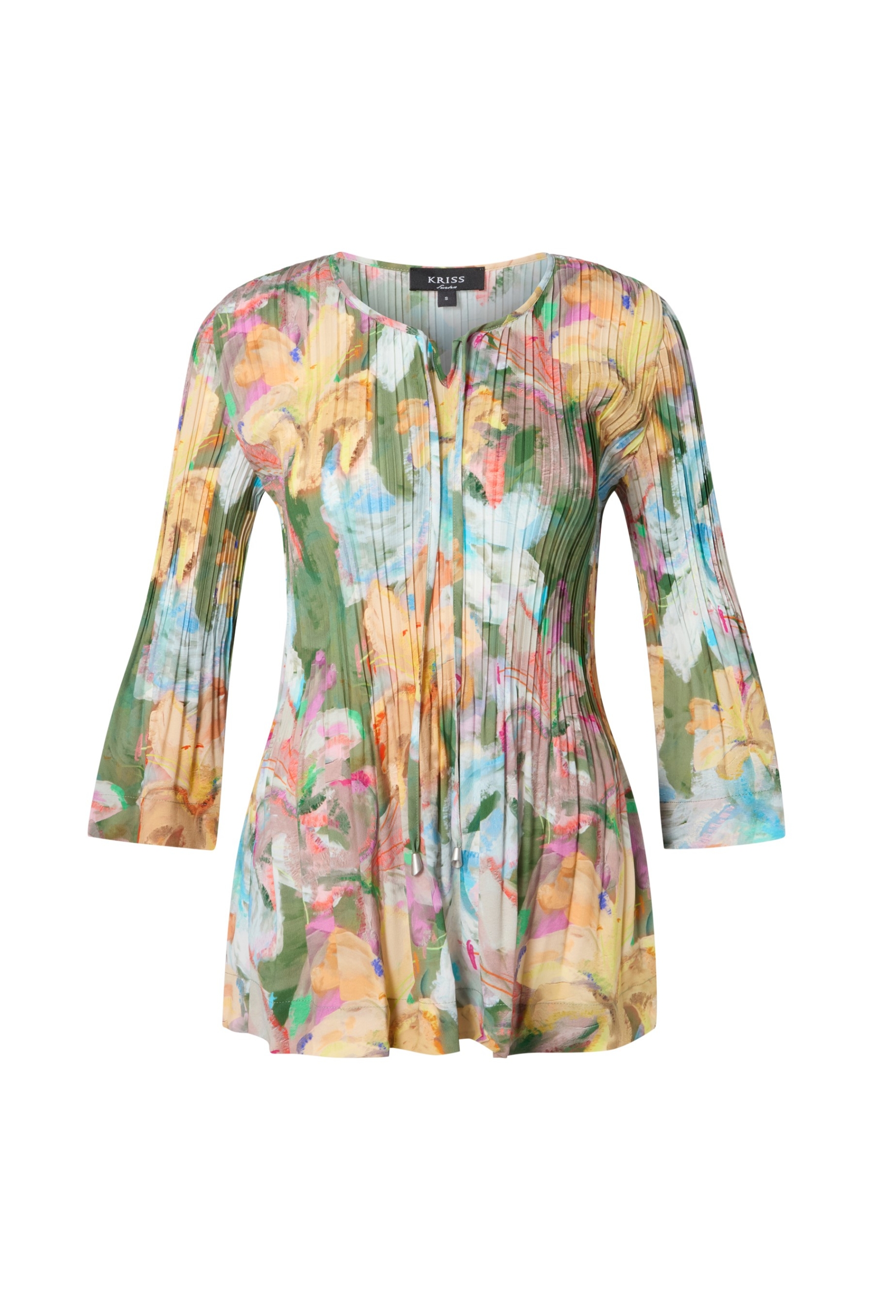 Ein weiches und dünnes Top aus Burnout-Trikot mit einem schönen Print. Das Modell ist relativ gerade geschnitten und die kurzen Ärmel reichen etwas über den Oberarm. Der runde Halsausschnitt ist mit einem Zierrand aus dem gleichen Stoff versehen. Die Gesamtlänge in Größe S beträgt 61 cm vom höchsten Punkt. Das Model auf dem Bild ist 178 cm groß und trägt Größe Small. Unsere großen Größen fallen normal aus, während unsere kleineren Größen etwas großzügiger ausfallen.