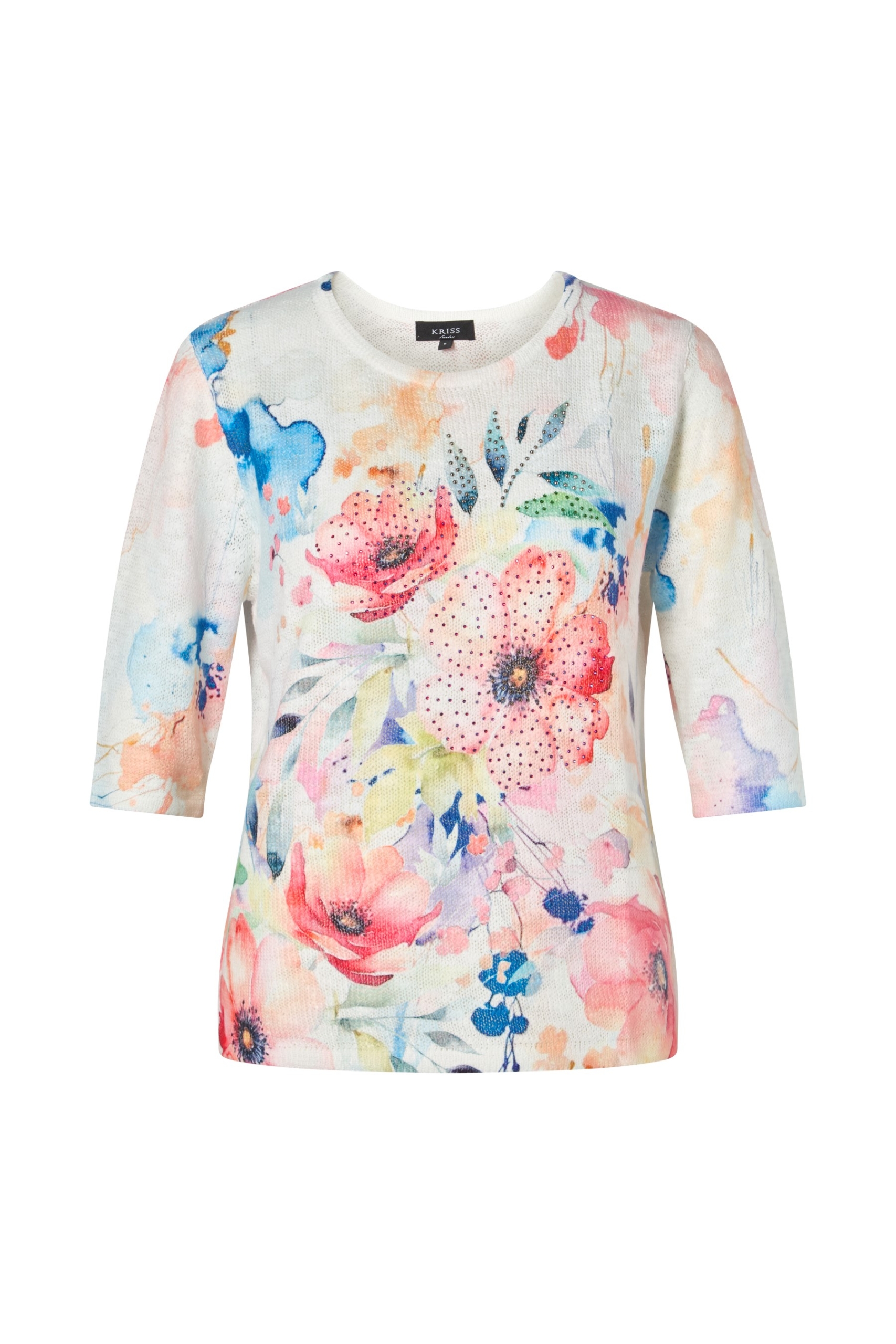 Strickpulli mit Blasenstruktur und Musterstrick.
