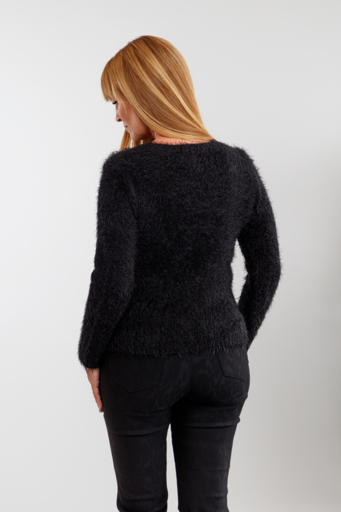 Pullover aus Langhaargarn mit Blüte4nstickereien und Perlen