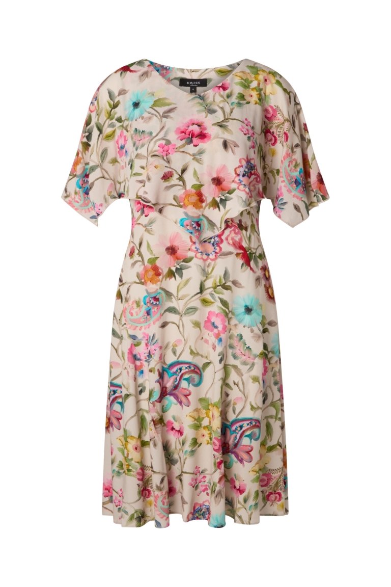 Plissierte Tunika aus bedrucktem Spitzenstoff mit Mesh-Futter. Die Tunika hat einen hohen Halsausschnitt mit einem Zierband, das vorne in der Mitte zusammengebunden werden kann. Die Bänder sind mit silberfarben Details und Quasten an den Enden versehen. Dreiviertelärmel, unten ausgestellt. Die untere Partie ist nicht plissiert, wodurch die Tunika über dem Po schön fällt. Die Gesamtlänge in Größe S beträgt 70 cm vom höchsten Punkt. Das Model auf dem Bild ist 178 cm groß und trägt Größe Small. Unsere großen Größen haben eine normale Passform, während unsere kleineren Größen etwas großzügiger ausfallen.